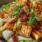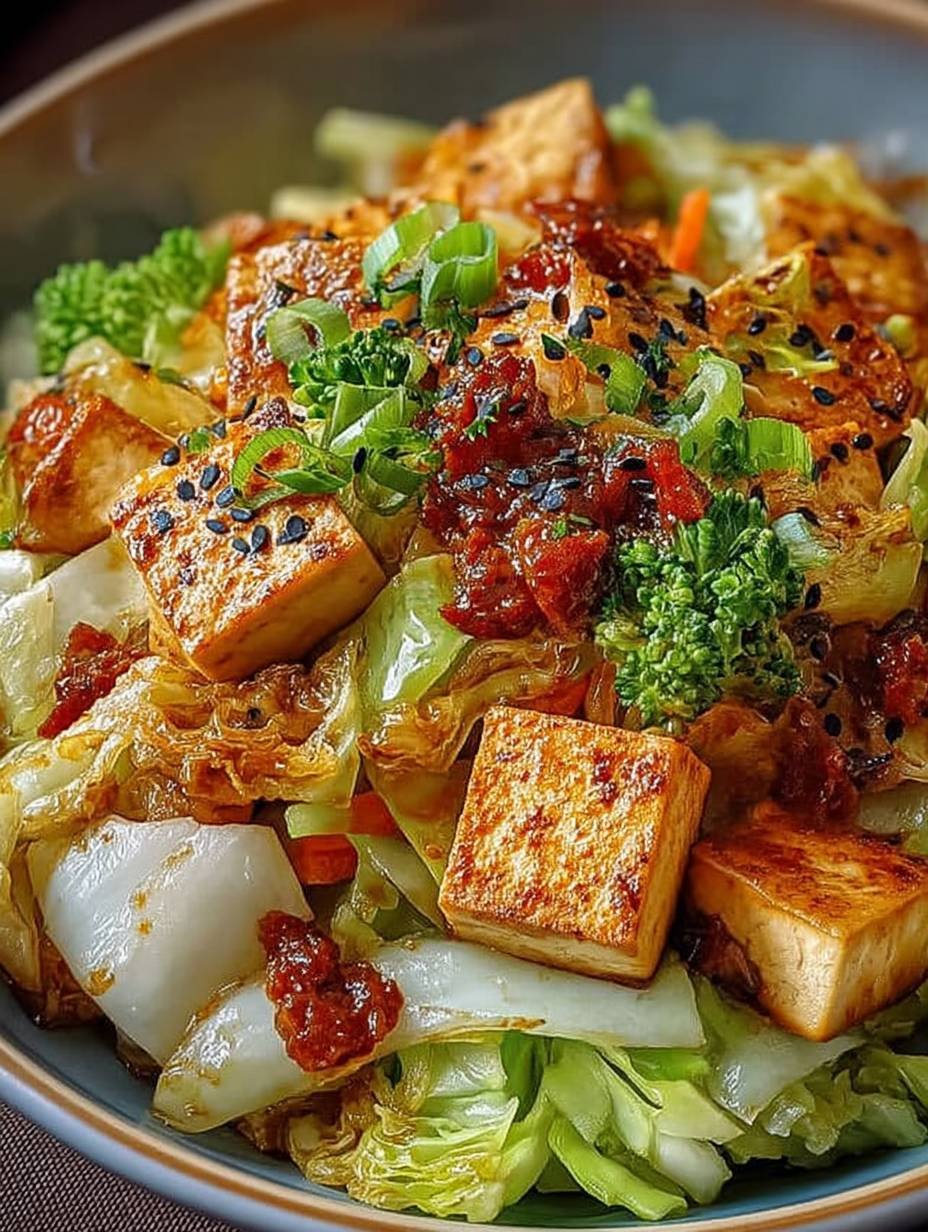 Die Aromen von zartem Tofu, knackigem Gemüse und einer harmonischen Würze vereinen sich in dieser köstlichen Tofu Kohlgemüse Pfanne. Jedes Bissen verspricht ein wahres Geschmackserlebnis, das sowohl den Gaumen erfreut als auch das Auge begeistert.