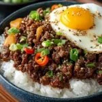 Dieses einfache Bulgogi mit Hackfleisch ist nicht nur schnell zubereitet, sondern bietet auch ein einzigartiges Geschmacksprofil, das Ihre Geschmacksknospen zum Tanzen bringt. Die Kombination aus süßen und herzhaften Aromen sorgt für eine atemberaubende Optik auf Ihrem Teller und lässt sich leicht anpassen – fügen Sie einfach Ihre Lieblingsgemüse hinzu oder variieren Sie die Gewürze nach Lust und Laune!