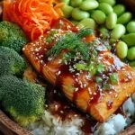 Die Teriyaki Lachs-Bowl Genuss pur vereint frische Aromen und gesunde Zutaten zu einem unvergesslichen Geschmackserlebnis. Der zarte Lachs harmoniert perfekt mit der süß-salzigen Teriyaki-Sauce, während knackiges Gemüse und aromatischer Reis das Gericht abrunden. Diese Bowl ist nicht nur ein Fest für die Sinne, sondern auch eine nährstoffreiche Mahlzeit, die schnell zubereitet ist. Lassen Sie sich von diesem geschmacklichen Erlebnis verführen und probieren Sie das Rezept heute aus – Ihre Geschmacksknospen werden es Ihnen danken!