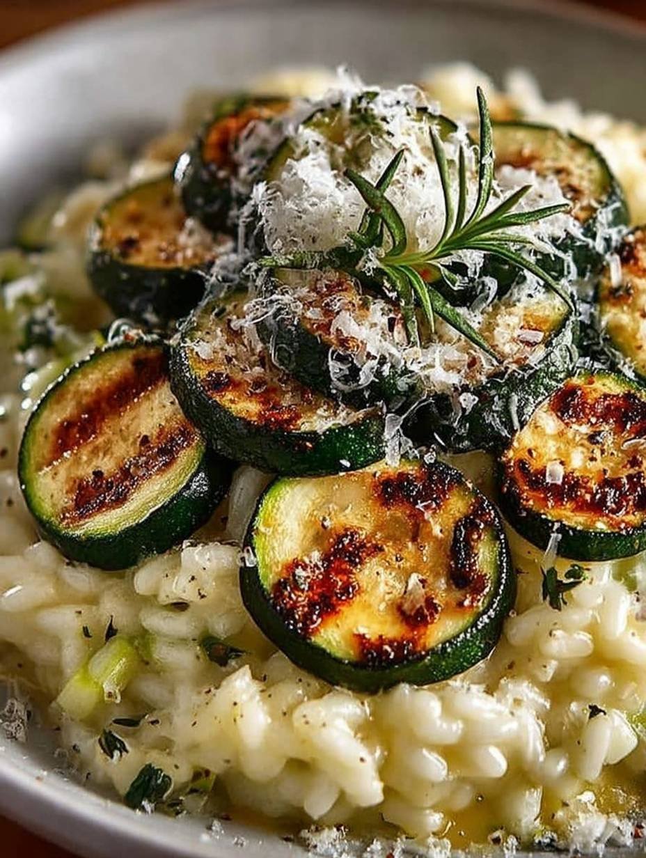 Leckeres lemon parmesan zucchini risotto Rezept mit detaillierten Anweisungen und Nährwertangaben.