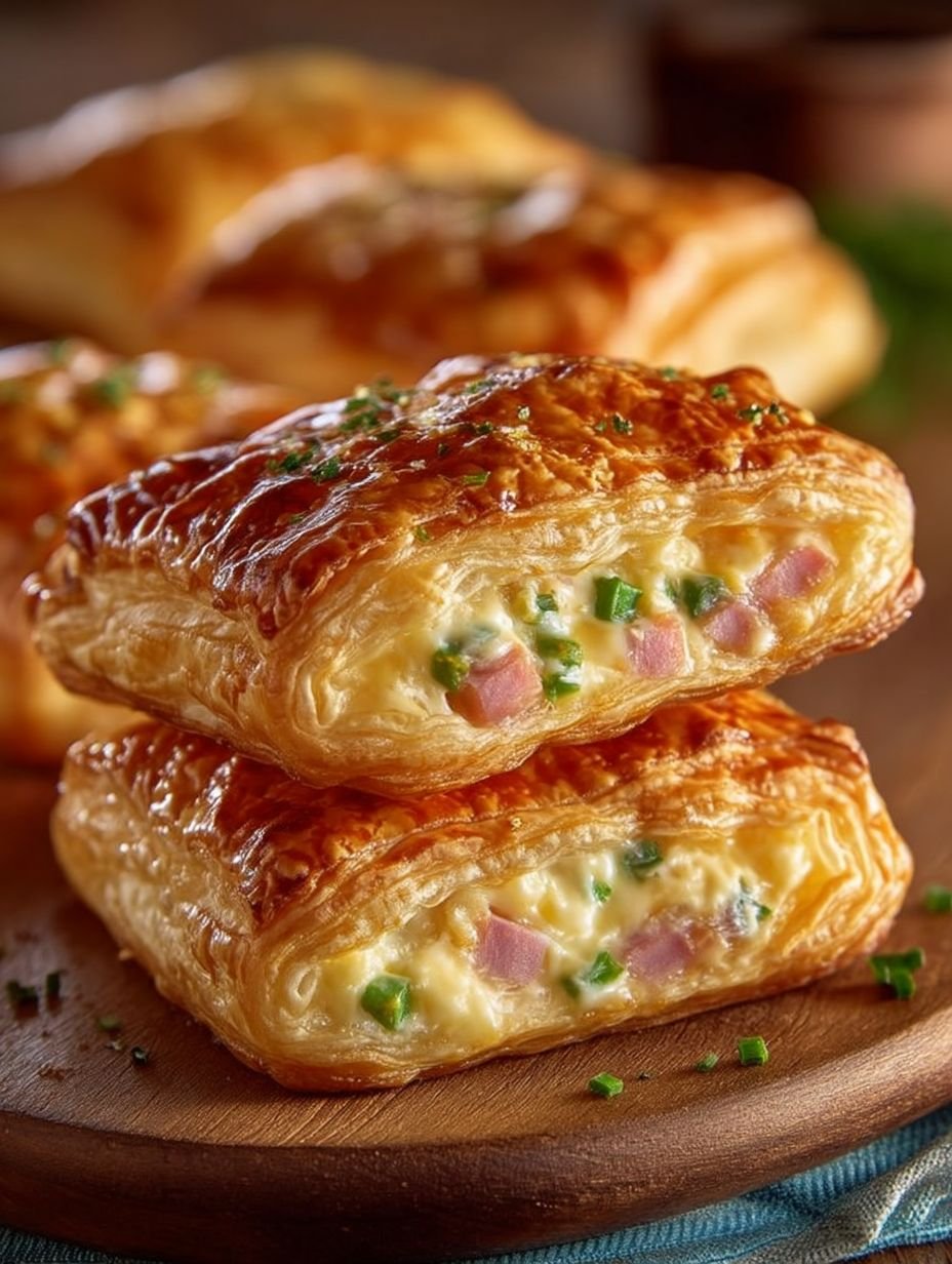 Genießen Sie Ihre knusprigen BLÄTTERTEIGTASCHEN MIT SCHINKEN-KÄSE-FÜLLUNG als Snack oder als Teil eines Buffets – Ihre Gäste werden begeistert sein!