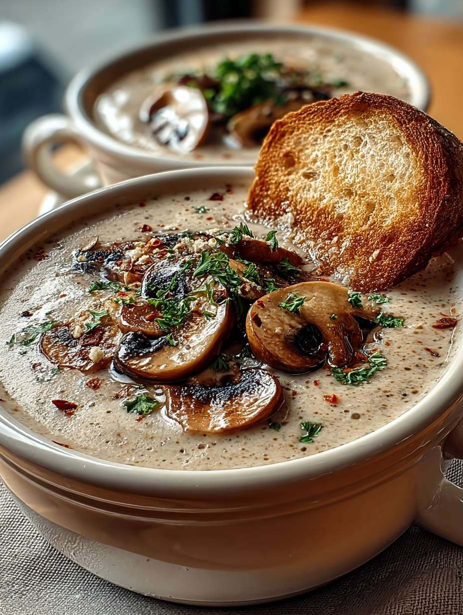 Mit diesen einfachen Schritten haben Sie eine köstliche cremige Pilzsuppe gezaubert! Perfekt als Vorspeise oder als Hauptgericht mit einem Stück knusprigem Brot. Guten Appetit!