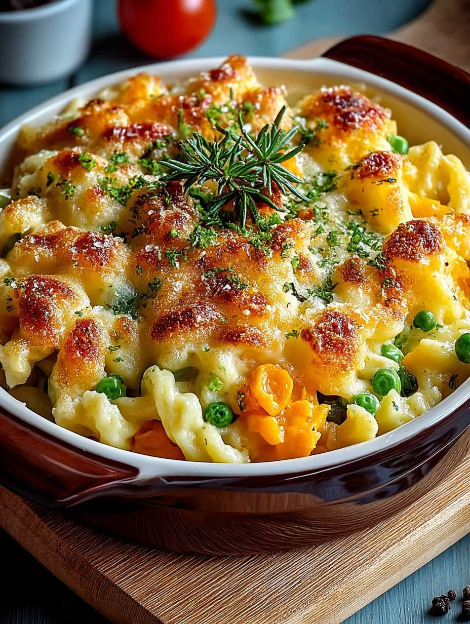 Serviertipp: Lassen Sie den Auflauf nach dem Backen kurz abkühlen und garnieren Sie ihn mit frischen Kräutern wie Petersilie oder Schnittlauch für einen zusätzlichen Farb- und Geschmackskick! Genießen Sie diesen herzhaften Genuss am besten warm – perfekt für gesellige Abende!