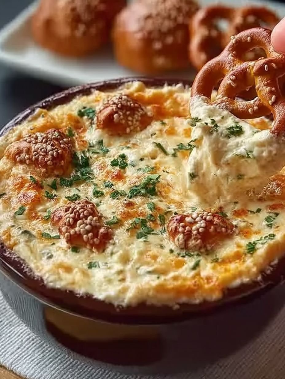 Dieser cremige und käsige Brezel-Dip ist im Handumdrehen zubereitet und eignet sich perfekt für jede Gelegenheit. Mit seinem einzigartigen Geschmacksprofil aus würzigem Käse und frischen Kräutern wird er zum Star Ihrer Partys. Die Optik ist atemberaubend – serviert in einer schönen Schüssel mit knusprigen Brezeln zum Dippen, zieht er alle Blicke auf sich. Darüber hinaus können Sie ihn ganz nach Ihrem Geschmack anpassen – ob Sie zusätzliche Gewürze hinzufügen oder verschiedene Käsesorten probieren möchten, Ihrer Kreativität sind keine Grenzen gesetzt!
