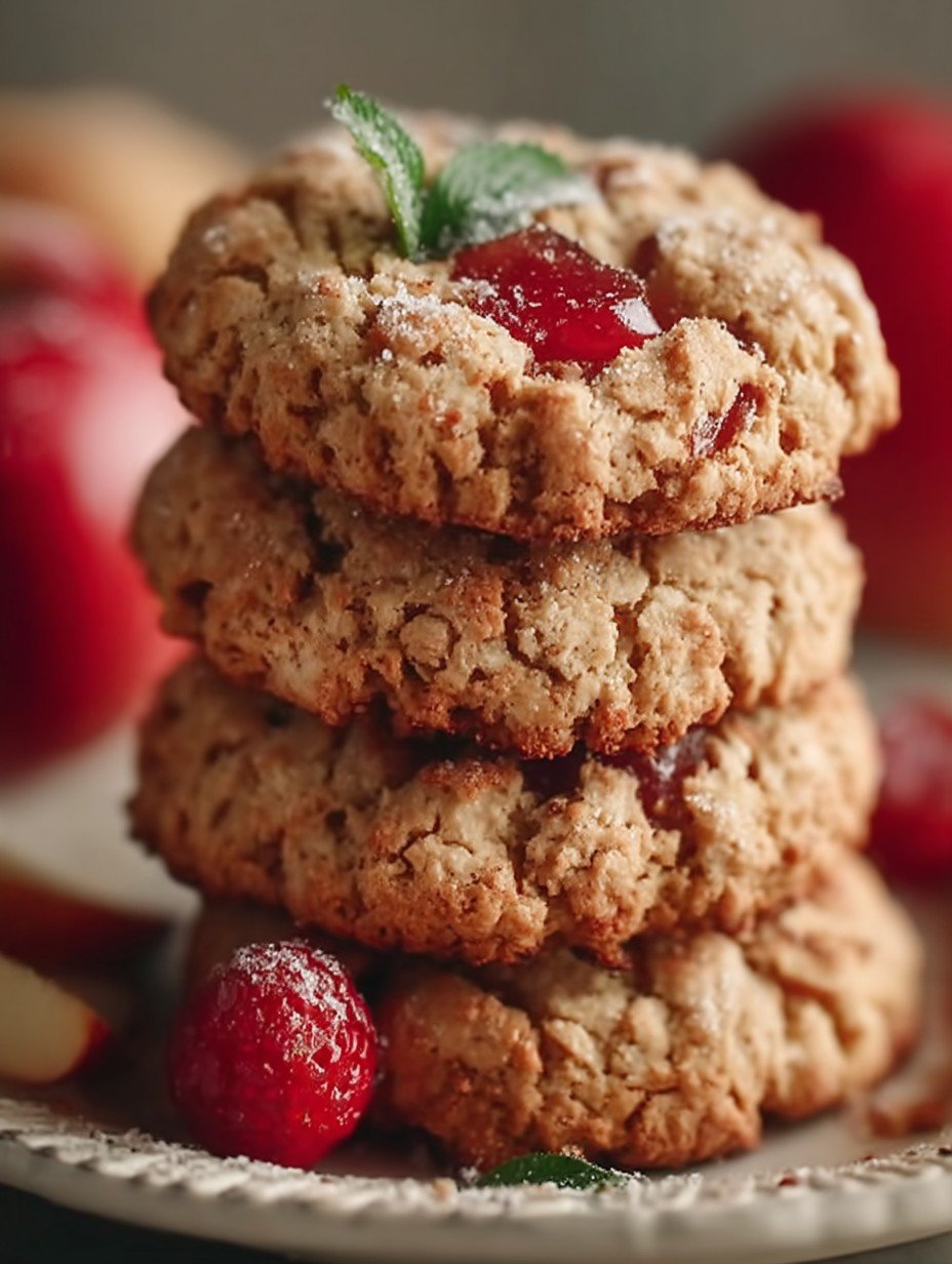 Stellen Sie sich vor, Sie beißen in einen frisch gebackenen Keks, der umhüllt ist von goldbrauner Knusprigkeit und dem verführerischen Duft von Zimt und süßen Äpfeln. Jeder Bissen ist ein harmonisches Zusammenspiel aus zarter Süße und einem Hauch von Säure – genau das richtige für die Seele!