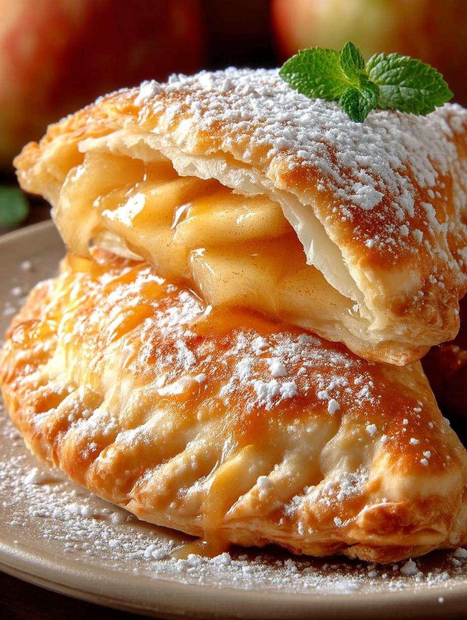 Ein verführerischer Duft von frisch gebackenen Apfeltaschen zieht durch die Küche und sorgt dafür, dass das Wasser im Mund zusammenläuft. Die Kombination aus zartem Quarkteig und fruchtiger Füllung lässt jeden Bissen zu einem kleinen Geschmackserlebnis werden.