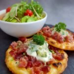 Knusprige, goldbraune Teigschichten, die mit einer cremigen Mischung aus frischem Gemüse und zartem Hähnchenfilet belegt sind – das ist der LOW CARB FLAMMKUCHEN! Die Aromen tanzen auf der Zunge und sorgen für ein Geschmackserlebnis, das sowohl leicht als auch befriedigend ist.
