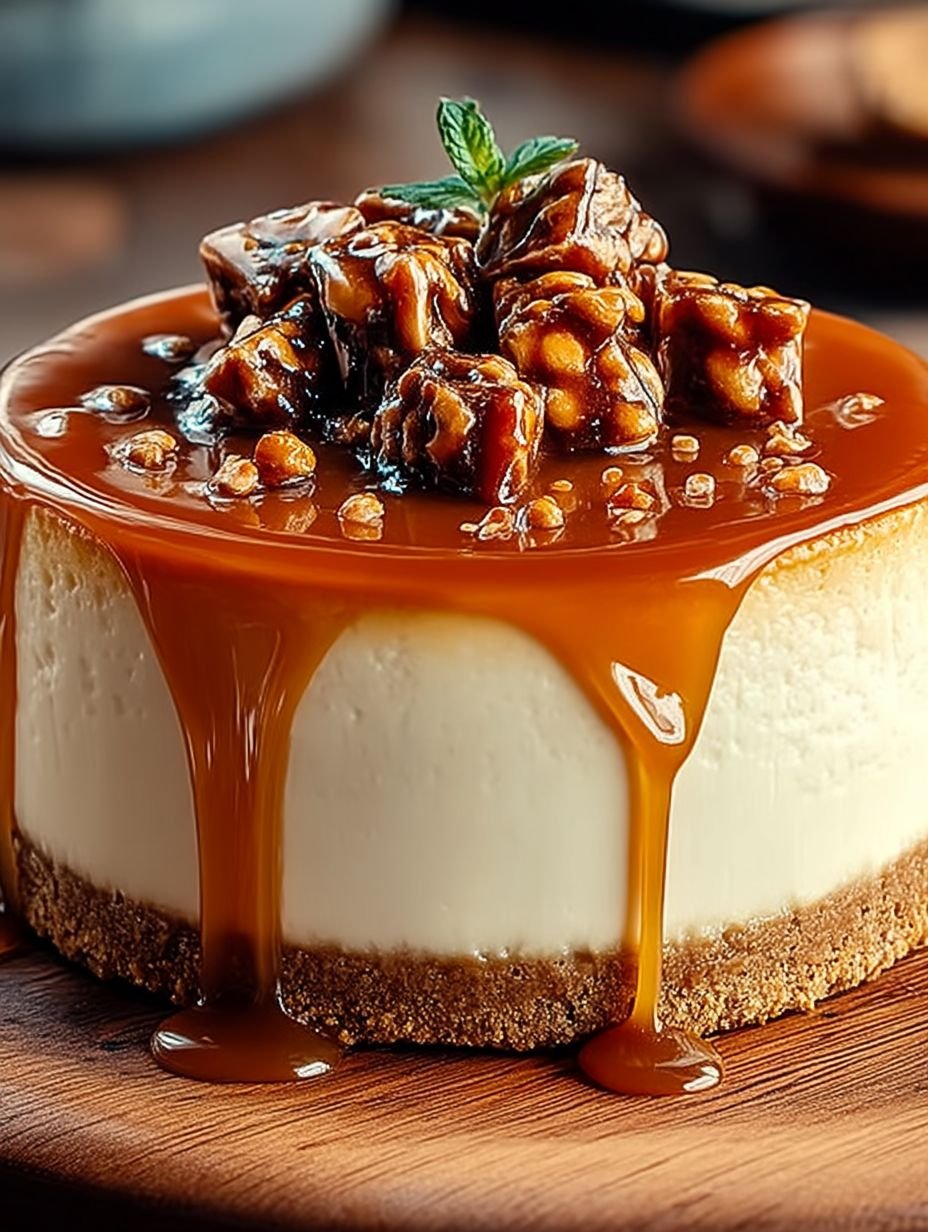 Leckeres gesalzener karamell-käsekuchen Rezept mit detaillierten Anweisungen und Nährwertangaben.