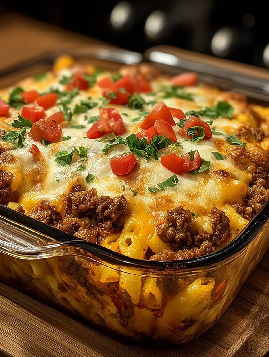 - Den Cowboy-Auflauf mit frisch gehackter Petersilie garnieren und heiß servieren.