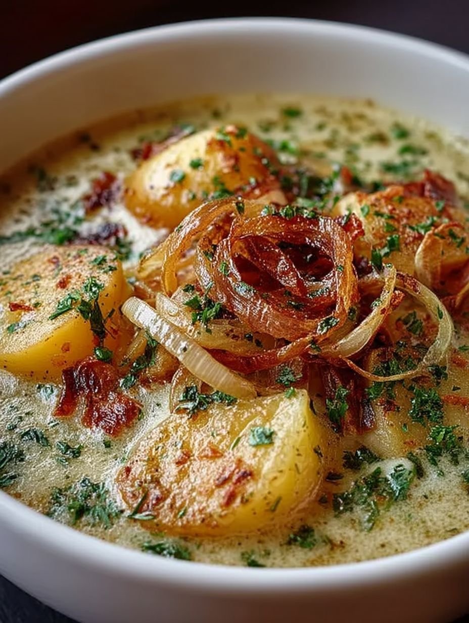 Jetzt haben Sie ein Rezept für eine unwiderstehliche Zwiebel-Kartoffelsuppe! Teilen Sie es mit Freunden oder genießen Sie es einfach allein – ganz wie es Ihnen gefällt!