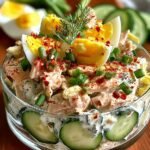 Ein frischer, cremiger Thunfischsalat mit Ei und Joghurt – Ein herzhaftes Genuss-Erlebnis! Stellen Sie sich vor, wie die Aromen von zartem Thunfisch, hartgekochten Eiern und einem Hauch von frischem Joghurt auf Ihrer Zunge tanzen. Jede Gabel bringt eine wahre Geschmacksexplosion, die sowohl den Gaumen erfreut als auch das Auge anspricht.