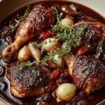 Das Klassische Coq au Vin begeistert mit seinem reichen Geschmack und der zarten Textur des Hähnchens, das in einer aromatischen Brühe aus frischem Gemüse und Kräutern gegart wird. Diese köstliche Mahlzeit ist nicht nur ein Fest für die Sinne, sondern auch eine hervorragende Möglichkeit, Familie und Freunde zu beeindrucken. Der verführerische Duft, der beim Kochen entsteht, wird Ihre Küche erfüllen und alle an den Tisch locken. Lassen Sie sich von diesem Rezept inspirieren und erleben Sie selbst die Freude am Kochen! Probieren Sie das Klassische Coq au Vin noch heute aus – es ist einfach unwiderstehlich!