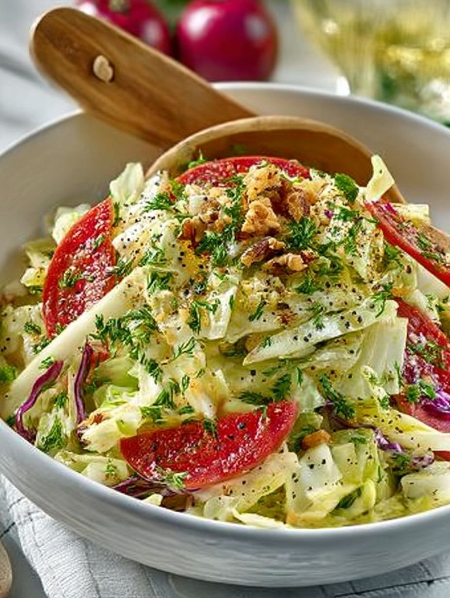 Ich erinnere mich noch gut an den Tag, als meine Großmutter zum ersten Mal einen ähnlichen Salat zubereitete. Es war ein sonniger Sonntag, und ich war skeptisch. „Kohl im Salat? Wie spannend!“, dachte ich mir mit einem Augenrollen. Doch als ich den ersten Bissen nahm, war ich überwältigt von der Frische und dem unerwarteten Geschmack. Seitdem ist dieser Salat für mich nicht nur ein Gericht – er ist ein Stück Kindheitserinnerung.