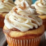 - Sobald die Cupcakes vollständig abgekühlt sind, sie großzügig mit dem Frosting garnieren und optional etwas Zimt darüber streuen.