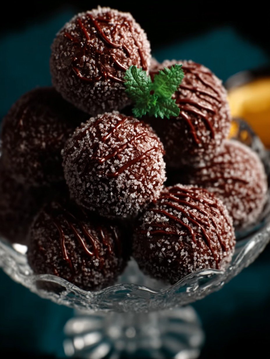 - Optional: Die Kugeln in geschmolzener Zartbitter-Schokoladenglasur wälzen und auf einem Kuchengitter abkühlen lassen.