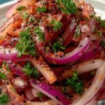 Dieses Rezept für Türkischer Zwiebelsalat mit Sumach ist ein wahres Meisterwerk der einfachen Küche. Die Zubereitung ist kinderleicht und erfordert keine besonderen Kochkünste – einfach schnippeln und vermengen! Der einzigartige Geschmack von Sumach verleiht dem Salat eine frische Säure und Tiefe, die ihn unverwechselbar macht. Optisch wird er jede Tafel aufpeppen: leuchtend rote Tomaten und knusprige Zwiebeln sind ein Fest für die Augen. Außerdem ist dieser Salat extrem vielseitig; ob als Beilage zu gegrilltem Hühnchen oder als Hauptgericht zusammen mit einem Pita-Brot – die Möglichkeiten sind endlos!