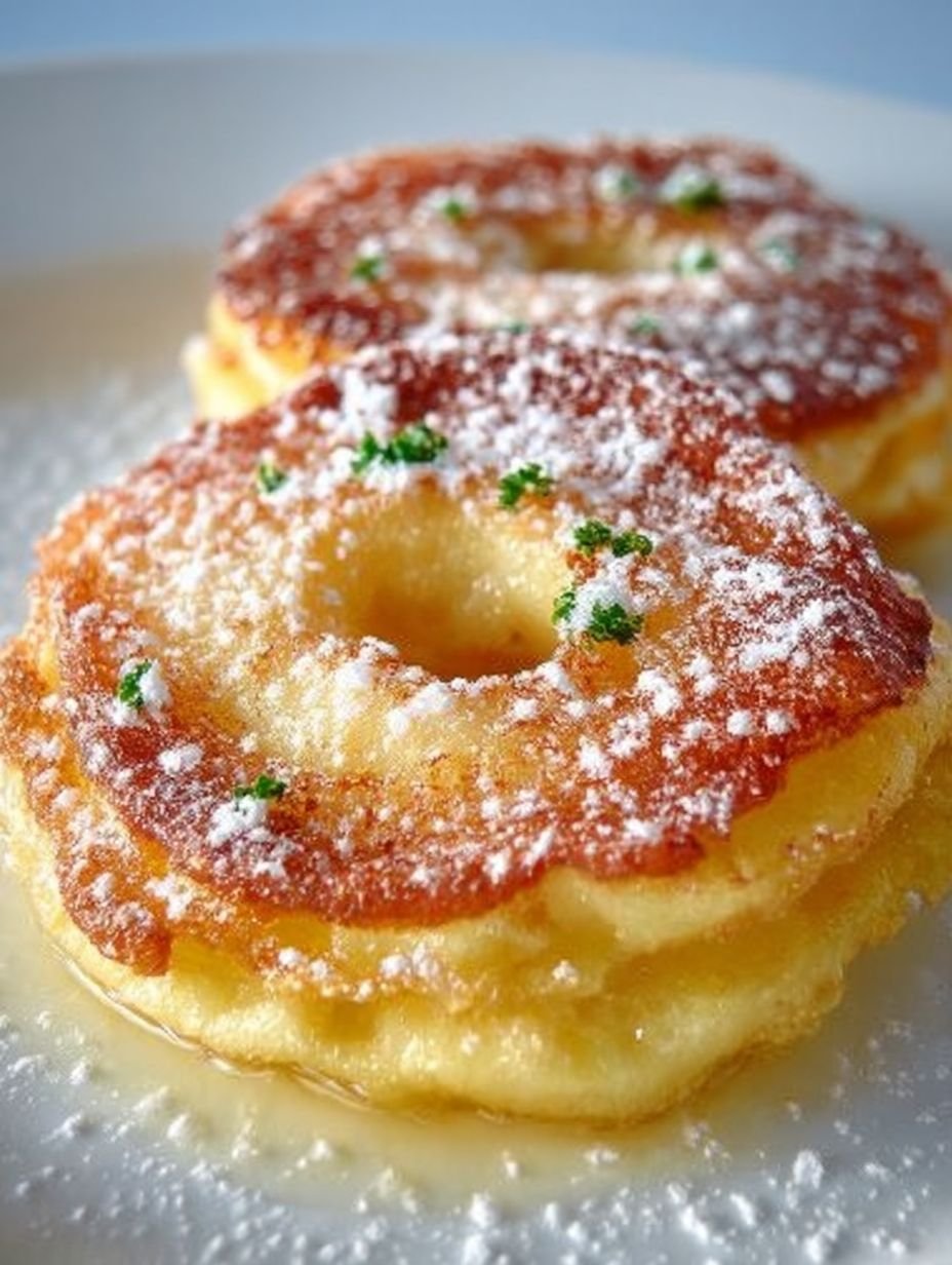 - Servieren Sie die Apfelringe warm als Snack oder Dessert.