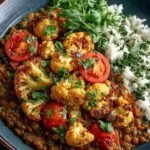Leckeres geröstetes blumenkohl linsen curry Rezept mit detaillierten Anweisungen und Nährwertangaben.