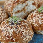 - Die Brötchen im vorgeheizten Ofen für etwa 20–25 Minuten backen, bis sie goldbraun sind.