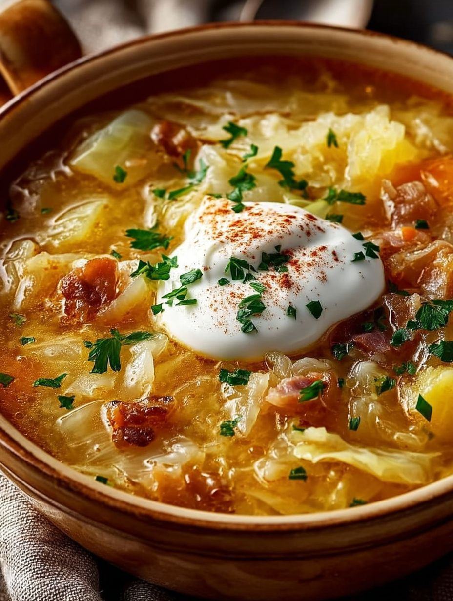 Diese herzhafte Sauerkraut-Suppe bringt nicht nur Wärme ins Herz, sondern auch Freude auf den Tisch! Ein perfektes Gericht für gesellige Abende oder einfach nach einem langen Tag – du wirst sehen!