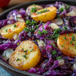 Und voilà! Ihre köstliche Rotkohl-Pfanne mit Kartoffeln ist fertig zum Genießen! Perfekt als Beilage oder sogar als Hauptgericht – probieren Sie es aus und lassen sich von den Aromen verführen!