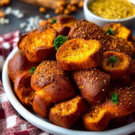 Zum Servieren: Die frisch gebackenen Brezeln warm servieren und großzügig mit der aromatischen Honig-Senf-Sauce beträufeln oder dippen – so bleibt kein Mund trocken! Genießen Sie diesen unwiderstehlichen Snack mit Freunden oder Familie und lassen Sie sich von den Aromen verzaubern!