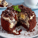 Ein Bissen von einem saftigen Maulwurfkuchen mit Bananen ist wie eine süße Umarmung für die Geschmacksknospen. Die cremige Füllung, kombiniert mit der zarten Schokoladenschicht, schmilzt förmlich im Mund und sorgt für ein wahres Geschmackserlebnis.