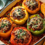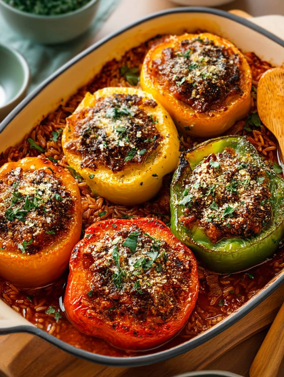 Was dieses Rezept besonders macht: Diese veganen Paprikaschoten mit Reis gefüllt sind nicht nur einfach zuzubereiten, sondern sie überzeugen auch durch ein einzigartiges Geschmacksprofil dank der Kombination von frischen Kräutern und Gewürzen. Ihre leuchtende Optik wird jeden Tisch aufwerten und sie sind unglaublich vielseitig – sei es als Beilage oder Hauptgericht, du kannst die Füllung ganz nach deinem Geschmack anpassen.