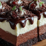 Diese Dreischichtige Schokoladenmousse-Torte ist nicht nur einfach zuzubereiten, sie begeistert auch mit ihrem einzigartigen Geschmacksprofil aus zarter Schokolade und knuspriger Textur. Ihre atemberaubende Optik macht sie zum Star jeder Feier und dank der vielseitigen Anpassungsmöglichkeiten können Sie sie ganz nach Ihrem Geschmack gestalten. Egal ob mit frischen Beeren oder einer extra Portion Sahne – diese Torte lässt sich leicht variieren und wird garantiert zum Highlight auf jedem Tisch!