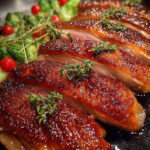 Genießen Sie Ihre Knusprige Entenbrust am besten sofort! Garnieren Sie das Gericht nach Belieben mit frischen Kräutern oder einer fruchtigen Sauce für einen zusätzlichen Kick an Frische!