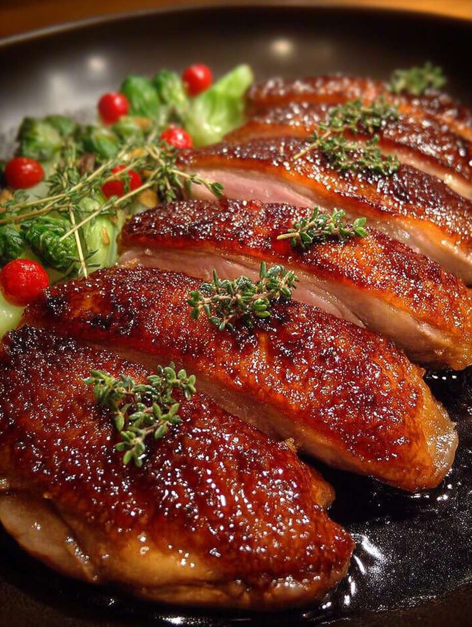 Leckeres knusprige entenbrust Rezept mit detaillierten Anweisungen und Nährwertangaben.
