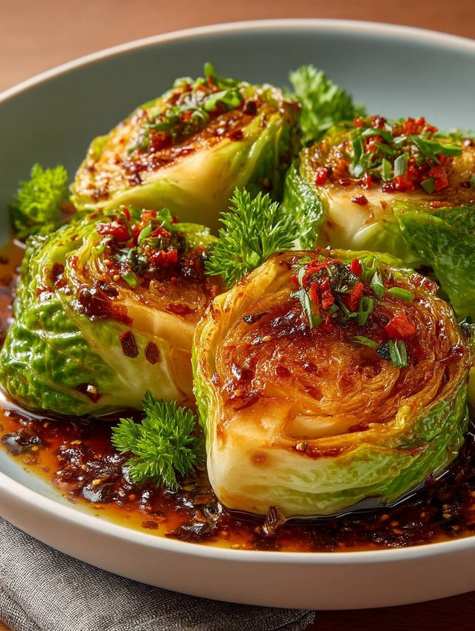 Dieses Rezept für geschmorten Spitzkohl mit würziger Sauce ist einfach zuzubereiten und bringt frischen Wind in Ihre Küche! Die Kombination aus knackigem Gemüse und einer einzigartigen, würzigen Soße wird Ihre Geschmacksnerven zum Tanzen bringen. Optisch ist das Gericht ein echter Hingucker auf jedem Tisch und eignet sich wunderbar für kreative Anpassungen – ob als Beilage oder Hauptgericht!