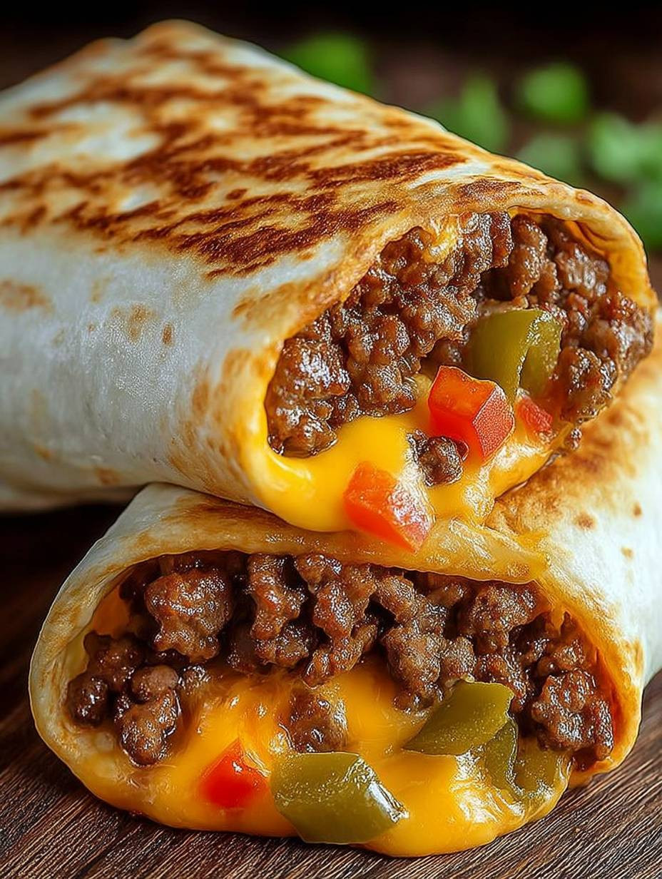 Leckeres knusprige cheeseburger wraps Rezept mit detaillierten Anweisungen und Nährwertangaben.