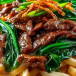 Udon-Nudeln mit Rindfleisch, Pak Choi und Röstzwiebeln
