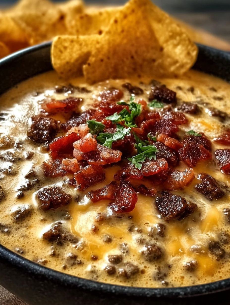Sizzling Bacon Cheeseburger Queso Dip