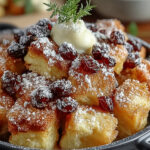 - Mit zwei Gabeln in Stücke reißen oder schneiden und großzügig mit Puderzucker bestäuben.