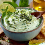 Genießen Sie diesen Basilikum Limette Creme Fraiche Dip mit Freunden und Familie – er wird sicherlich schnell zum Favoriten!