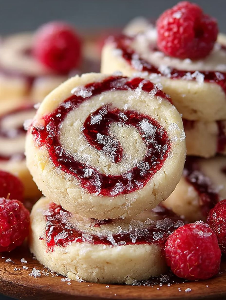 Serviertipp: Genießen Sie die Himbeer-Wirbel Shortbread Kekse am besten frisch gebacken mit einer Tasse Tee oder Kaffee! Ein wenig Puderzucker oben drauf macht sie noch verführerischer – weil wir ja schließlich alle ein bisschen Süßes im Leben brauchen!
