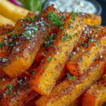 Die knusprigen Butternut-Kürbis-Pommes sind nicht nur eine köstliche Alternative zu herkömmlichen Pommes, sondern auch eine gesunde Snackoption, die voller Aromen steckt. Mit ihrer goldenen, knusprigen Oberfläche und dem zarten Inneren bieten sie ein sensorisches Erlebnis, das Ihren Gaumen verwöhnt. Diese Pommes sind einfach zuzubereiten und ideal für jede Gelegenheit – ob als Snack oder Beilage. Probieren Sie dieses Rezept aus und lassen Sie sich von der Kombination aus Geschmack und Gesundheit begeistern! Gönnen Sie sich diesen gesunden Snackgenuss und bringen Sie frischen Schwung in Ihre Küche!