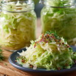 Einfache Zubereitung trifft hier auf ein einzigartiges Geschmacksprofil, das mit seiner knackigen Textur und der leichten Säure begeistert. Dieses Gericht sieht nicht nur toll aus – leuchtend grün und knallig rot – sondern lässt sich auch vielfältig anpassen. Ob du es pur genießen oder als Beilage zu deinem Lieblingsgericht servieren möchtest, dein selbstgemachtes Sauerkraut wird alle überraschen!
