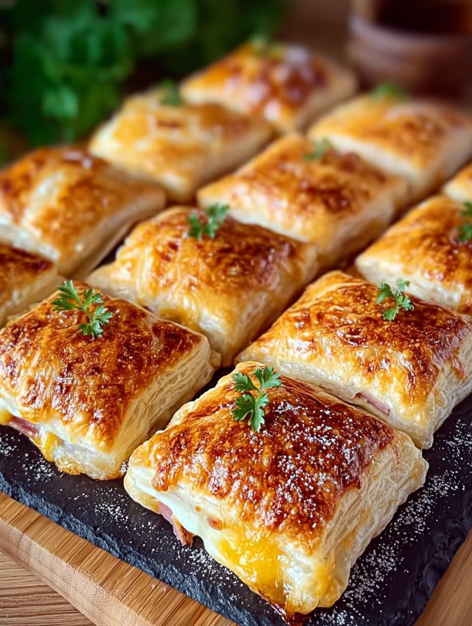 Knusprige Blätterteigtaschen mit Käse und Schinken