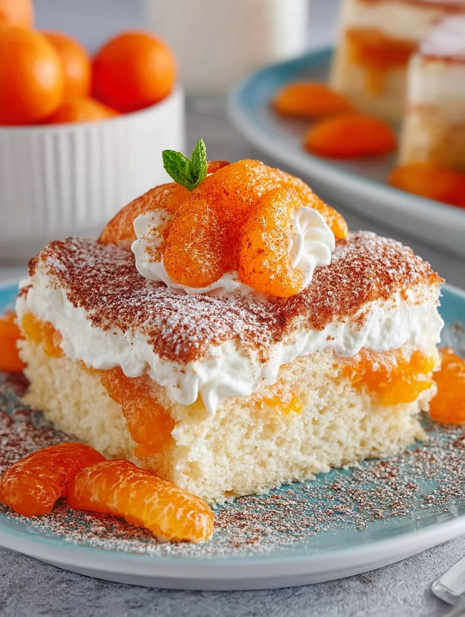 Serviertipp: Schneide den Mandarinen-Schmand-Kuchen nach dem Kühlen in Stücke und garniere jedes Stück mit frischen Minzblättern oder einer Prise geriebener Zitronenschale für einen zusätzlichen Frischekick!