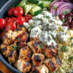 Serviertipp: Mit einem Spritzer frisch gepresstem Zitronensaft garnieren und sofort genießen! Diese griechische Hähnchen-Bowl wird Ihre Geschmacksnerven zum Tanzen bringen!