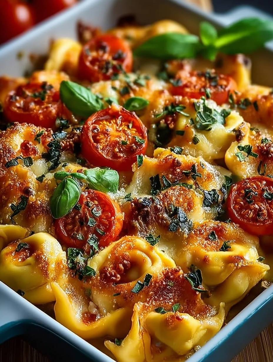 Die Aromen eines frisch gebackenen Auflaufs strömen durch die Küche und versetzen dich in den Himmel der Geschmäcker. Mit einer goldbraunen Kruste, die fast nach einem Umarmung ruft, und saftig gefüllten Tortellini, die mit einer köstlichen Mischung aus Gemüse und Gewürzen gefüllt sind, wird dein Gaumen ein wahres Fest erleben.