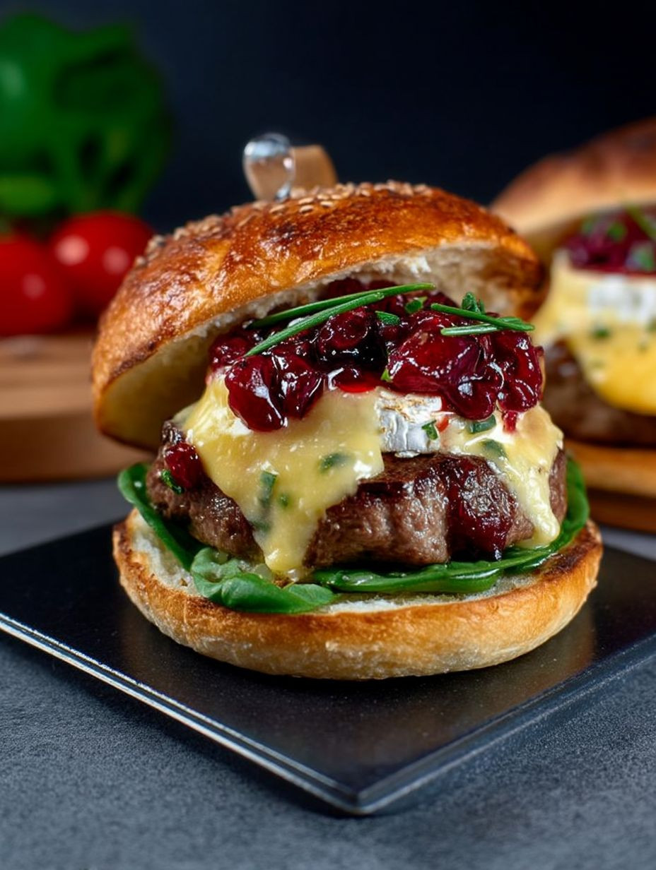 Stell dir vor, du beißt in einen Burger, dessen geschmolzener Camembert mit süßen Preiselbeeren ein wahres Geschmackserlebnis entfaltet. Der warme, cremige Käse umhüllt die fruchtige Süße der Beeren und ergibt eine himmlische Kombination, die deine Geschmacksknospen zum Tanzen bringt.