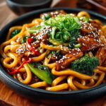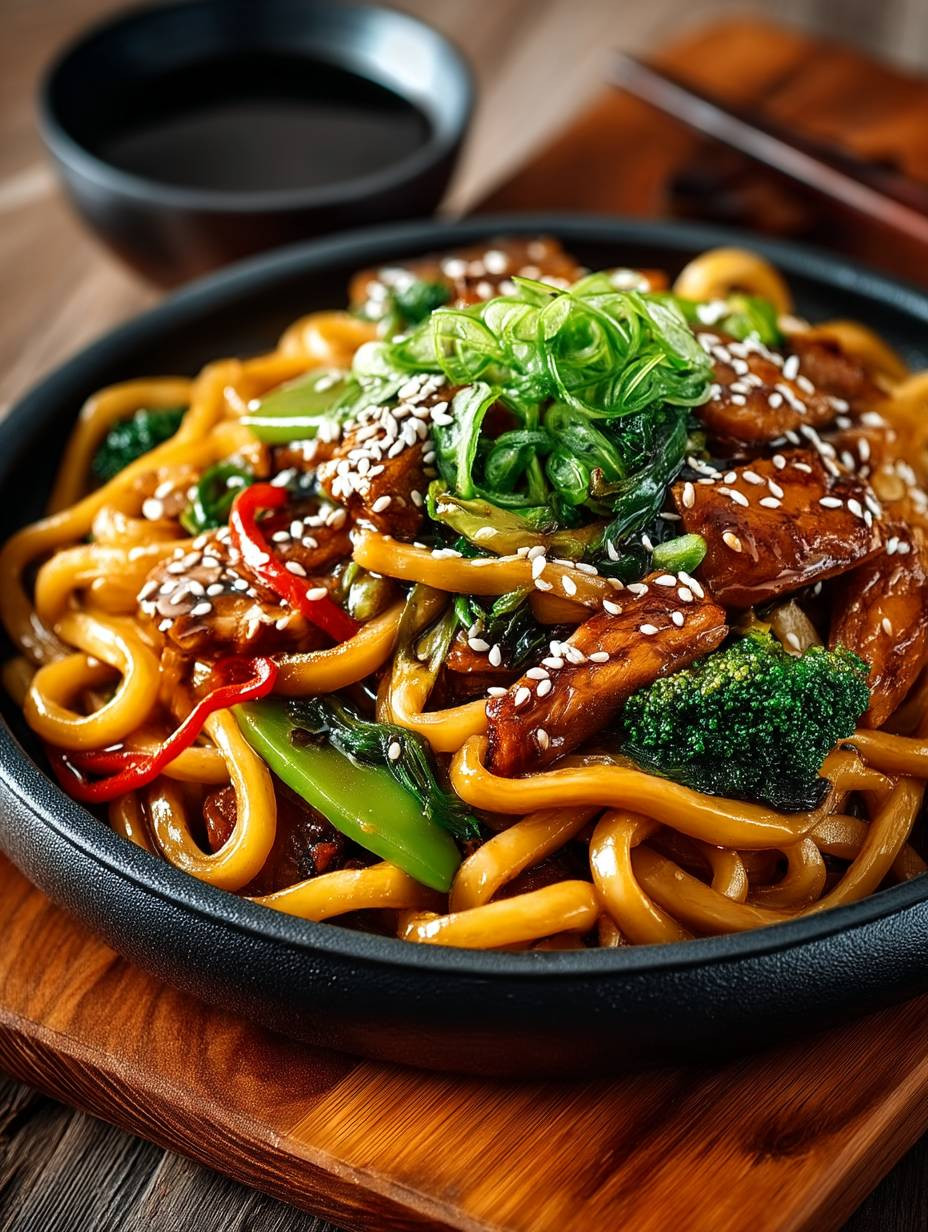 Eine Schüssel Teriyaki Udon Nudeln ist wie eine Umarmung für den Gaumen – zart, würzig und einfach unwiderstehlich. Die Kombination aus geschmeidigen Udon-Nudeln und einer hausgemachten, süß-salzigen Teriyaki-Sauce wird Ihre Geschmacksnerven zum Tanzen bringen.