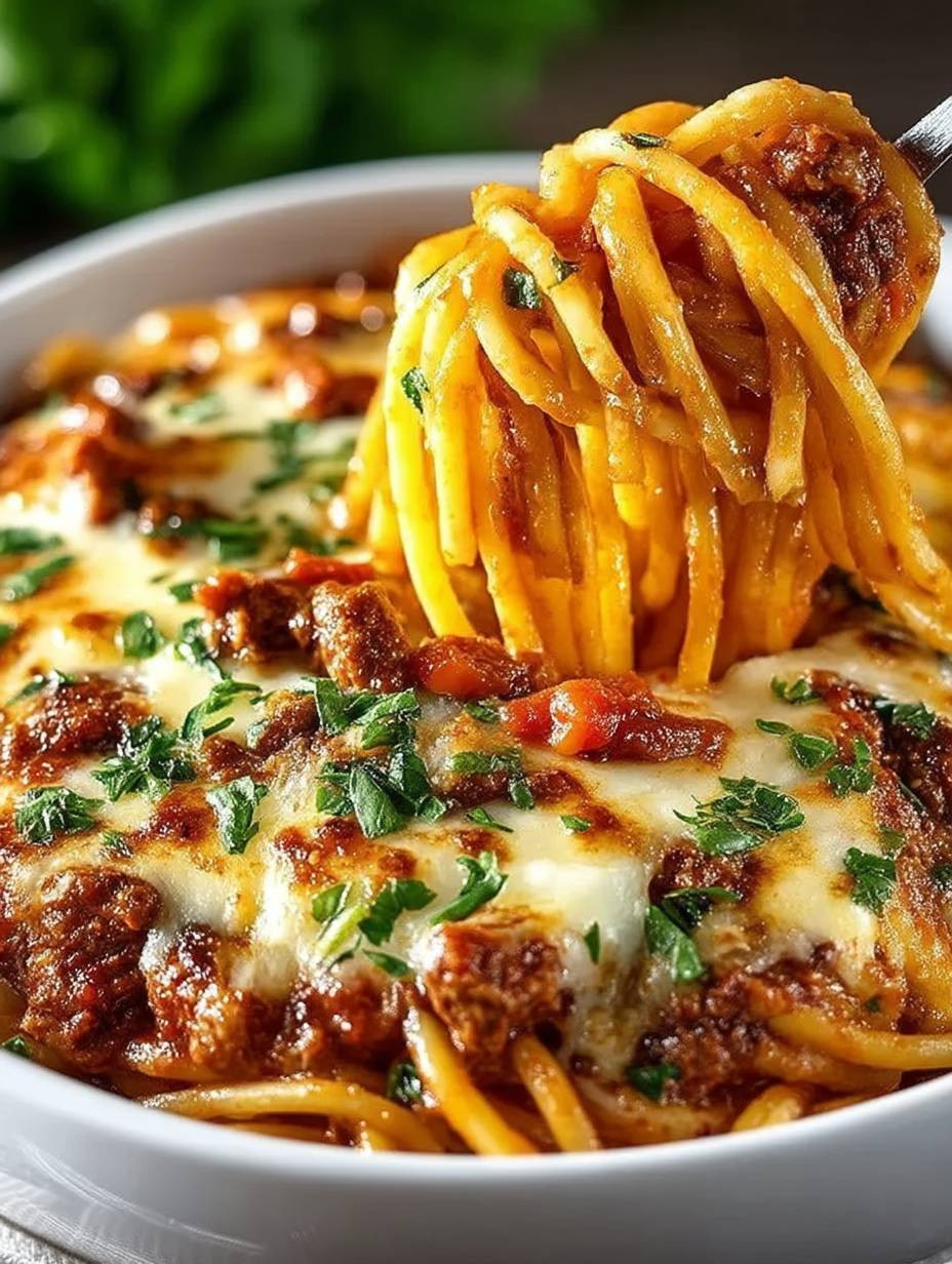 Leckeres proteinreicher spaghetti-auflauf Rezept mit detaillierten Anweisungen und Nährwertangaben.