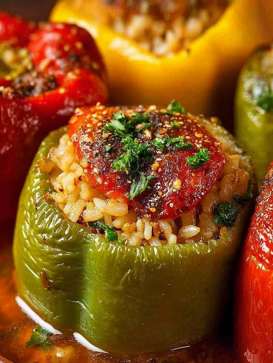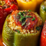 Serviertipp: Mit frischer Petersilie garnieren und sofort genießen! Diese gefüllten Paprika sind nicht nur lecker, sie bringen auch Farbe auf jeden Tisch – perfekt für ein gemütliches Abendessen oder eine festliche Zusammenkunft!