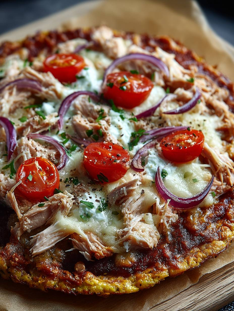 Dieses Rezept für Low-Carb Pizza mit Quark und Thunfisch: Der Genuss ohne Reue! ist nicht nur einfach zuzubereiten, sondern bietet auch ein einzigartiges Geschmacksprofil, das die Kombination von frischem Thunfisch und cremigem Quark perfekt zur Geltung bringt. Die atemberaubende Optik der goldbraunen Kruste lässt einem das Wasser im Mund zusammenlaufen. Zudem ist es unglaublich vielseitig – ob Sie Gemüse hinzufügen oder auf andere Proteine umsteigen möchten, jedes Mal wird es ein neuer Genuss!