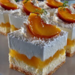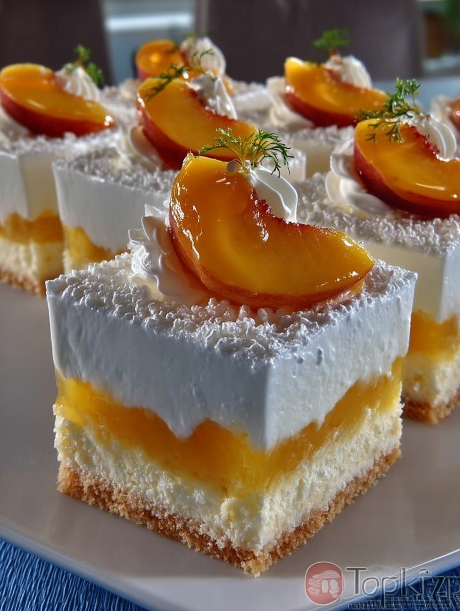 Diese köstlichen Pfirsich-Cremeschnitten sind perfekt für jede Gelegenheit – ob zum Kaffee mit Freunden oder als Abschluss eines schönen Abendessens. Lassen Sie Ihre Gäste staunen über dieses einfache aber beeindruckende Dessert!